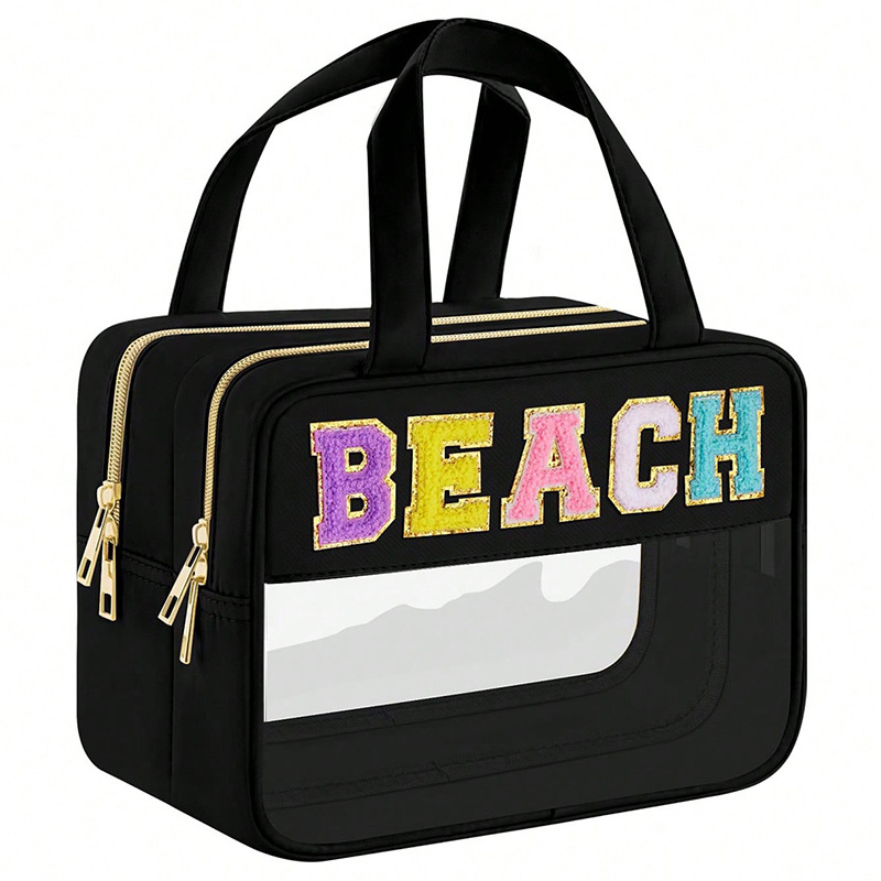 Amazonクロスボーダーシェニールアルファベット化粧ポーチPVC大容量収納バッグポータブル透明旅行洗面バッグ