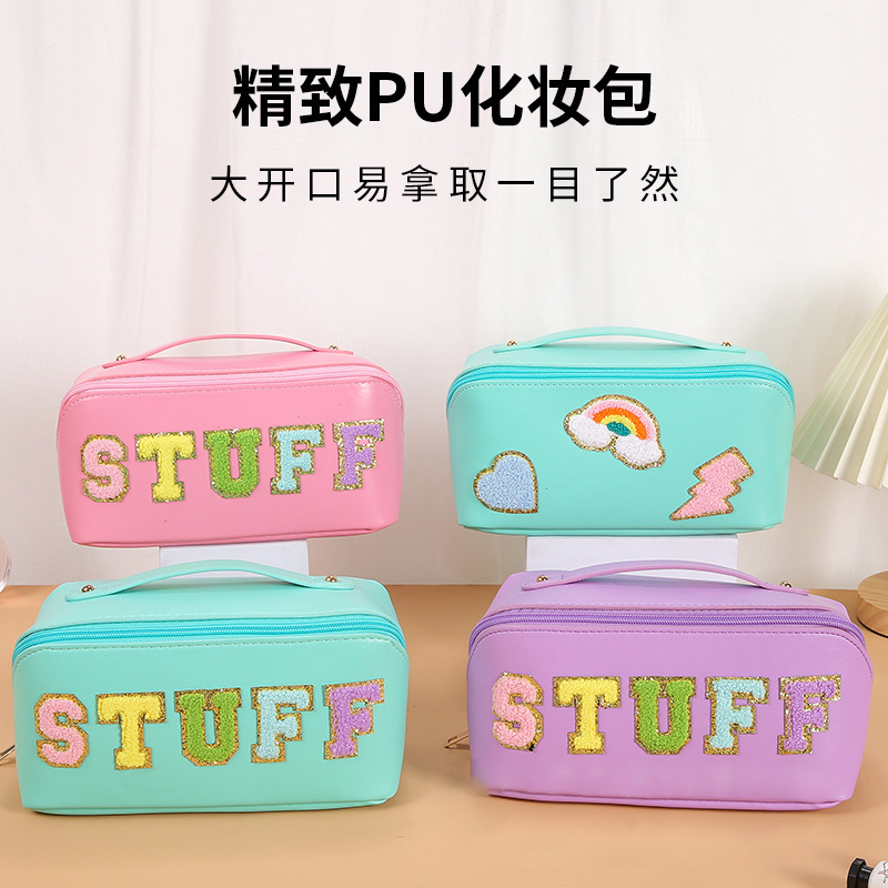 PU刺繍アルファベット化粧バッグクロスボーダー大容量高颜値旅行洗面収納バッグ便利枕化粧バッグ