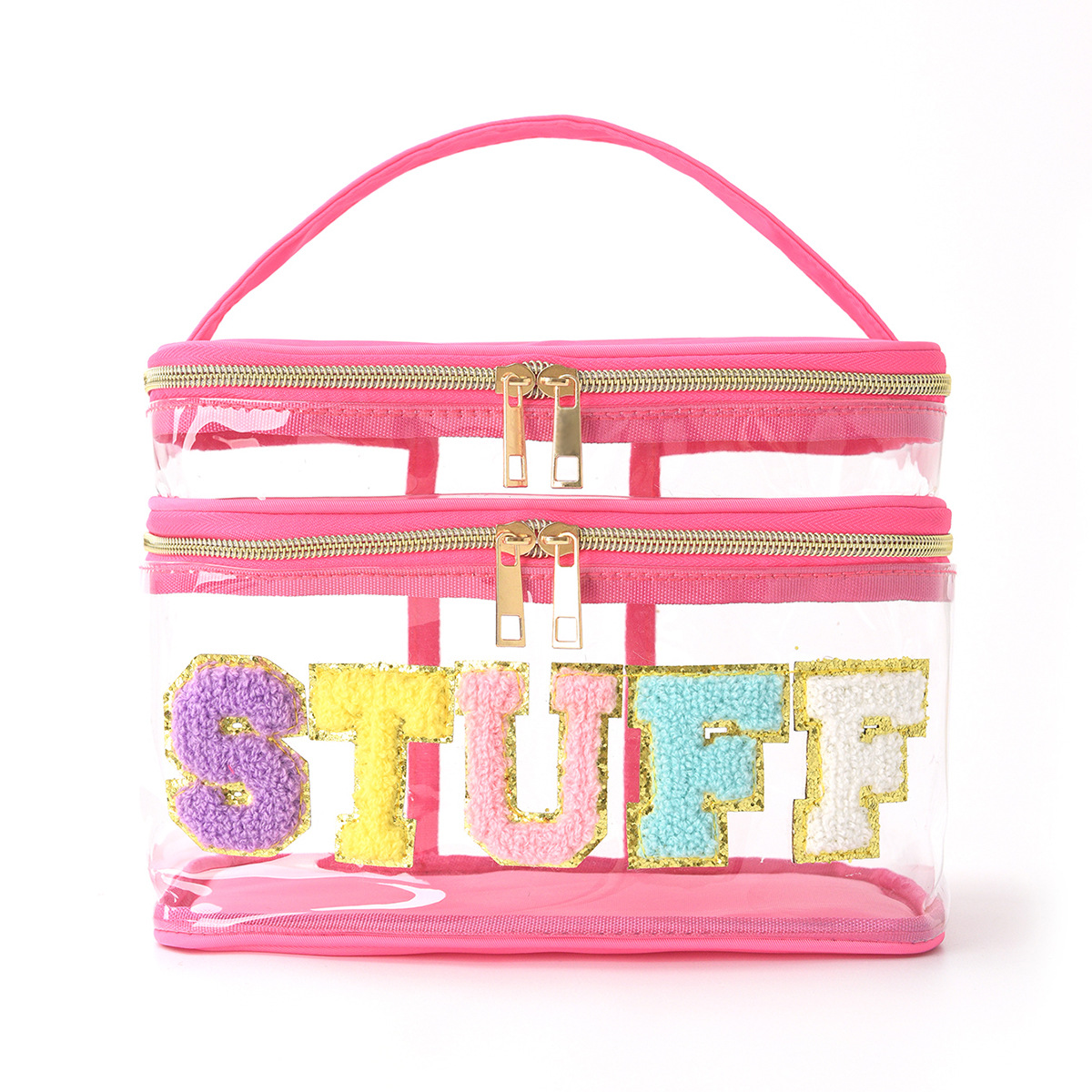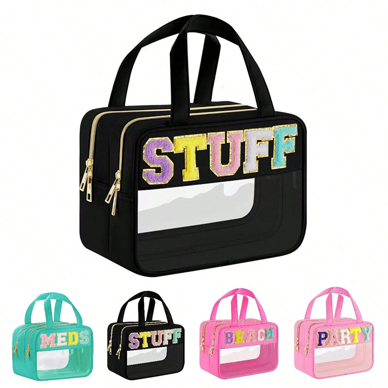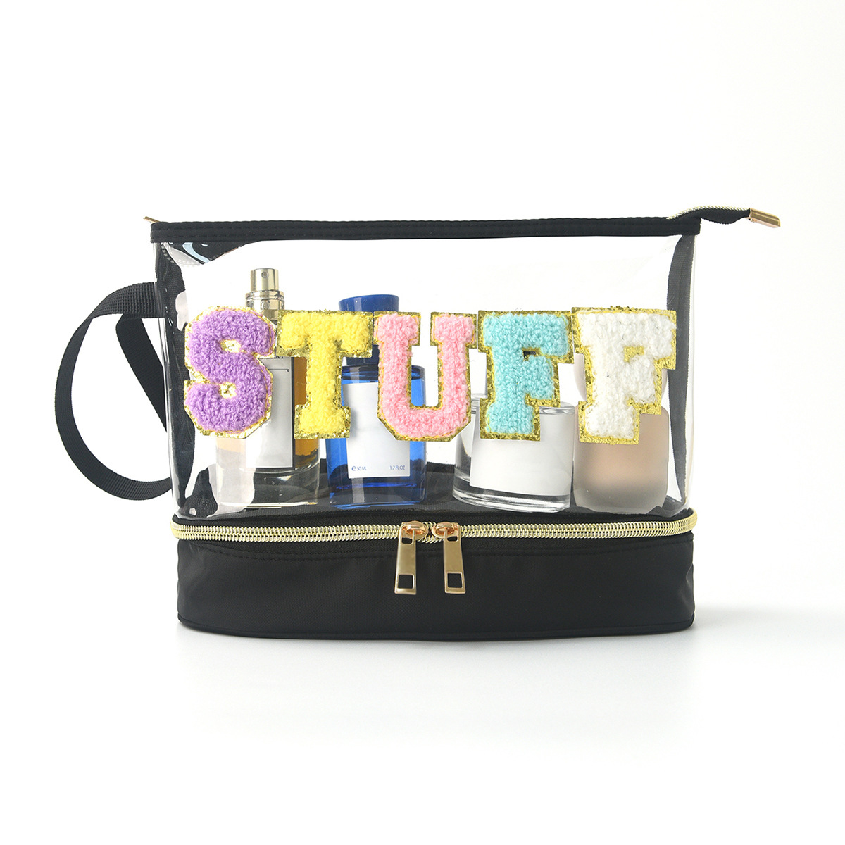 クロスボーダー三角立体タオル刺繍アルファベットステッカー化粧バッグ大容量ポータブル防水透明PVCジッパーバッグ