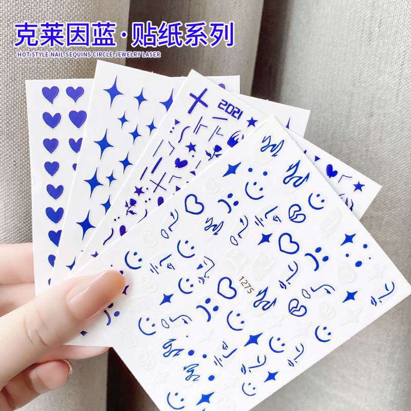 ネイルシールクラインブルー炎笑顔炎ネイルinsシンプルライン3D防水持続性バックテープ