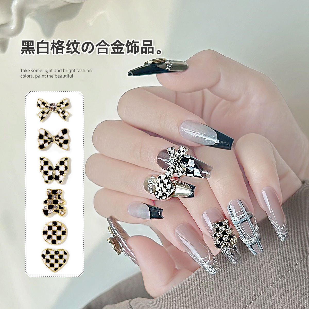 爆発的なネイルアートの合金の白黒の碁盤の格子の装飾品の蝶結びの愛の熊の蝶の爪の装飾品