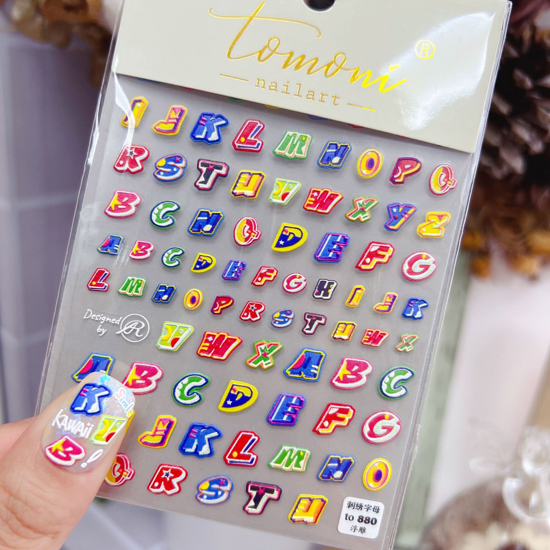 ネイル浮き彫りシール愛坤新曲同項5D電音シール日系背ゴム爪貼り刺繍アルファベットウサギ