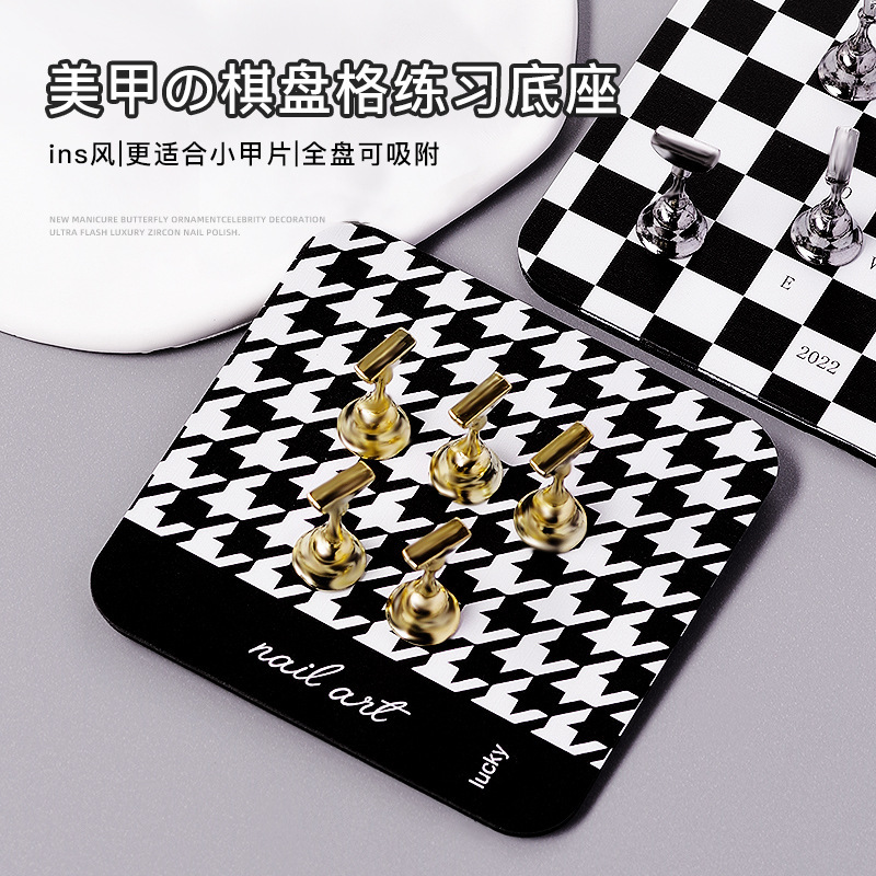 マニキュア白黒初心者チェス盤小さなネイル練習ベース強力な磁気プレート固定ネイルホルダー全面吸着