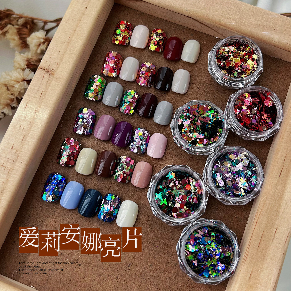 秋冬ネイルスパンコール超キラキラ星蝶八角形フラッシュピンク幻彩白多角形爪装飾品