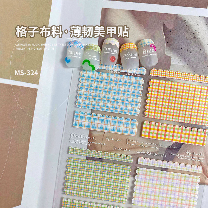 薄っぺらなネイルシールは、協力金の日系insスタイルの紋様の爪に格子生地のレース英語文字を貼ることができない
