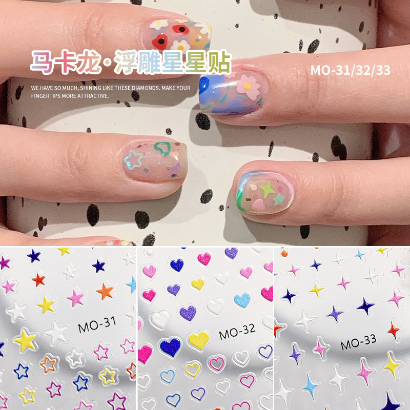 ネイルアートエンボスステッカーマカロンラブy2kホットガールピンクとブルーのカラフルなスターエレメントスターネイルアートステッカー
