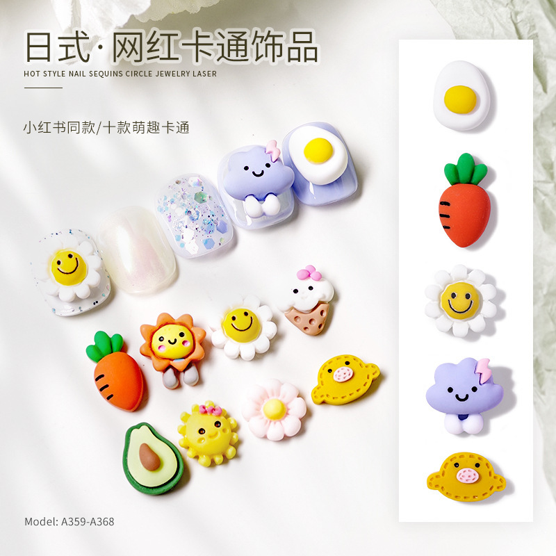 ネイルアクセサリーのアニメのネットの赤いタイプの太陽の花のアヒルの荷は卵の雲の立体のかわいい滴のゴムの完成品を包みます。