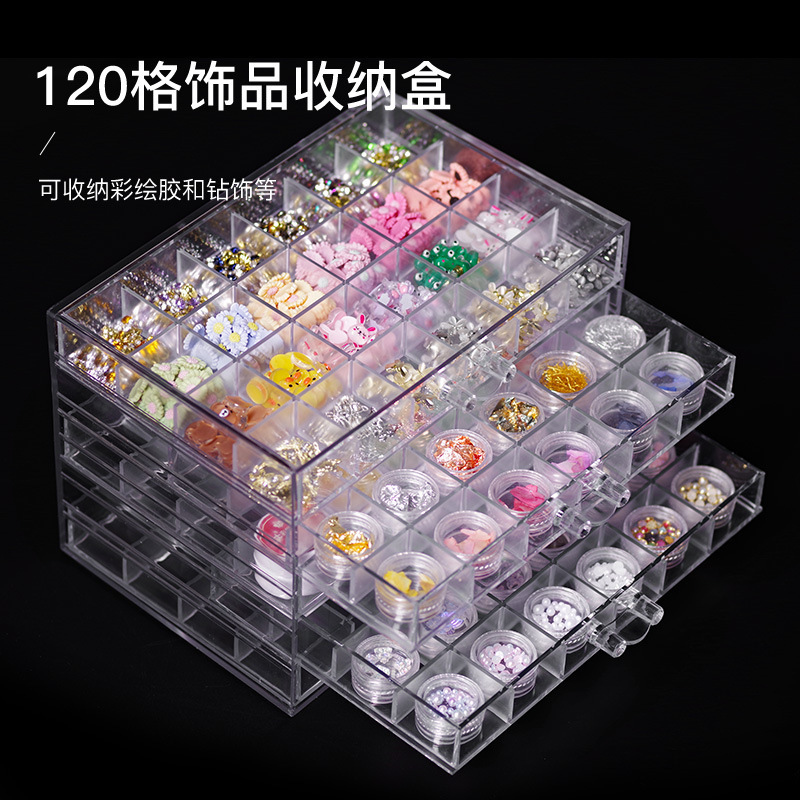 ネイルアクセサリーアクリル収納ボックス多層120格引き出し式透明収納ボックスデスクトップドリル展示ボックス