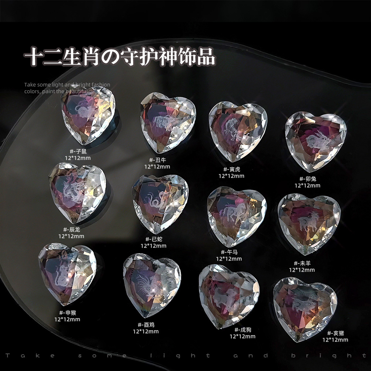 ネイルアートジュエリー 12 星座透明カラフルな愛のクリスタル内部彫刻ネズミ牛虎ウサギドラゴンヘビ馬羊猿鶏犬豚ダイヤモンド