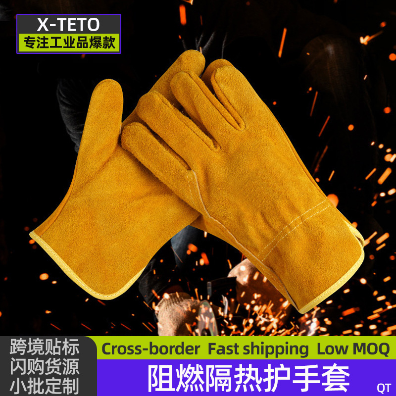 溶接手袋、牛革、難燃性、断熱性、火傷防止溶接手袋、重工業用手袋、高温耐性労働保護ソフトレザーグローブ