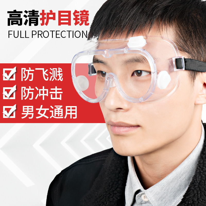 ゴーグル防曇防つば防衝撃防飛散透明防風防塵四珠密封メガネ男女卸売り