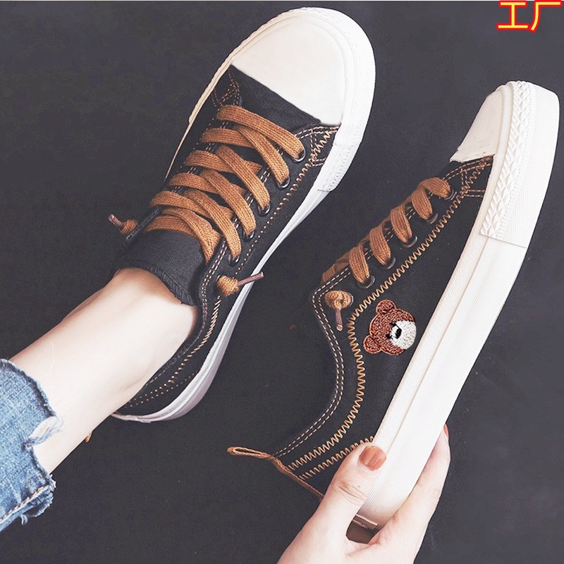 2025新型ベアーキャンバス靴女性夏通気板靴ファッション靴白靴子供百合学生カジュアル靴