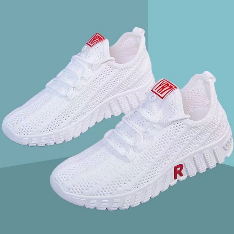 2025春夏新作飛織網面婦人靴カジュアルランニングスポーツ白靴韓国版ファッション通気ネット靴