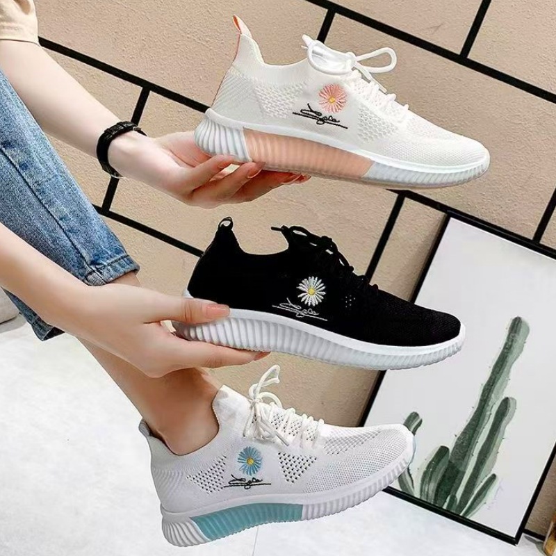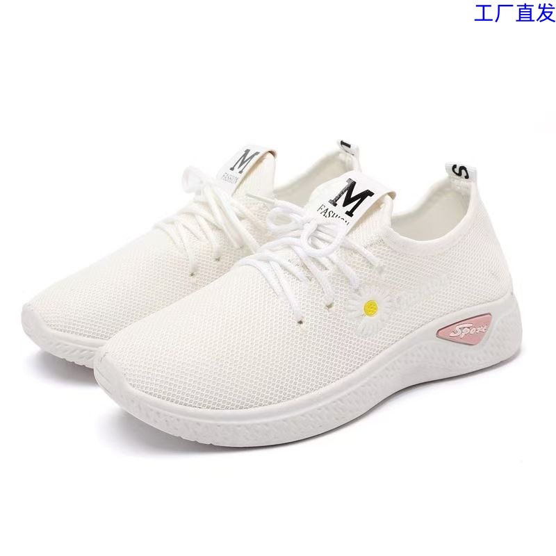 小さいデイジーの運動靴の女性のネットの靴の通気性のカジュアルな靴の平底の女性の靴の飛織の女性の運動靴のフィットネスの靴