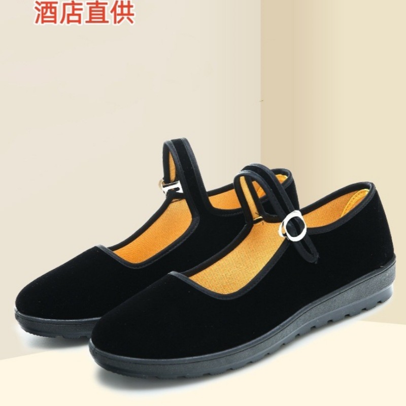 春の古い北京の布靴の女性の黒い平の靴のホテルの黒い工装の靴はダンスの中年のお母さんの布靴を掛けます。
