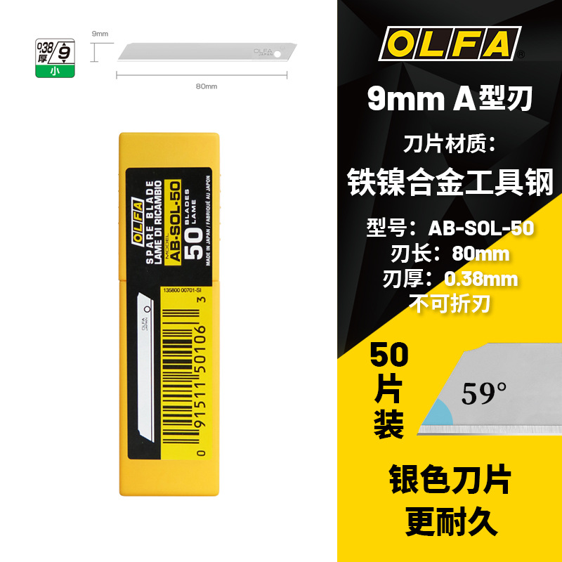 OLFAエリ華日本替刃シルバー無段式標準9mmアートチップ50枚入AB-SOL-50
