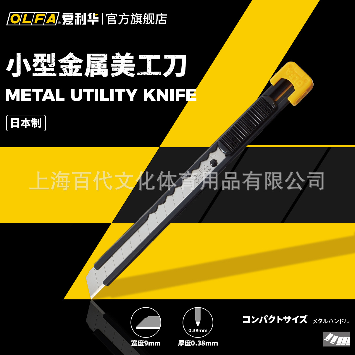 OLFA愛利華小型軽量金属グリップ美工刀9mm軽量小型美工刀黒色金属S刀