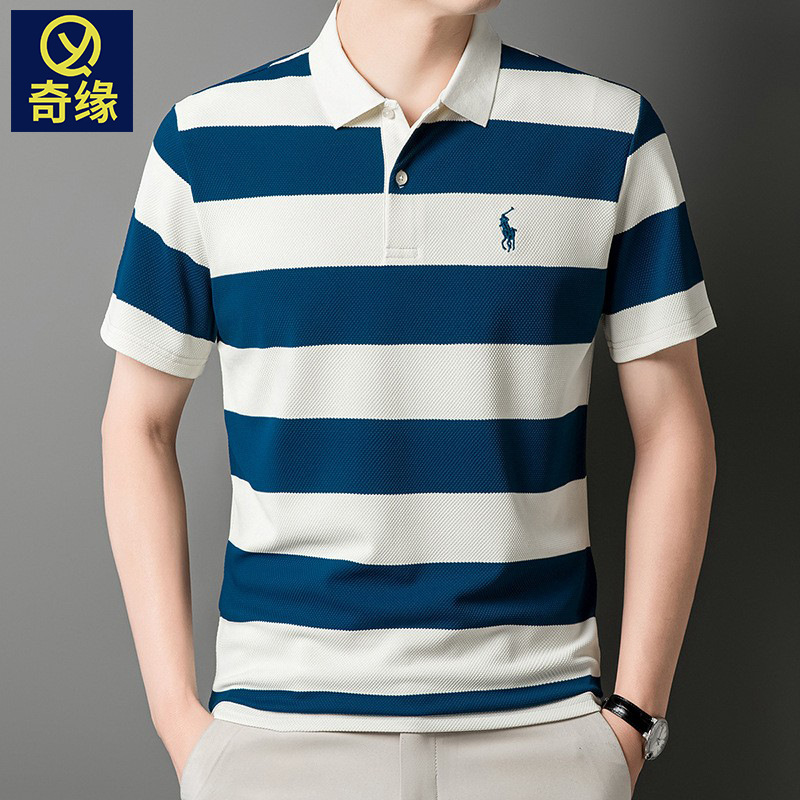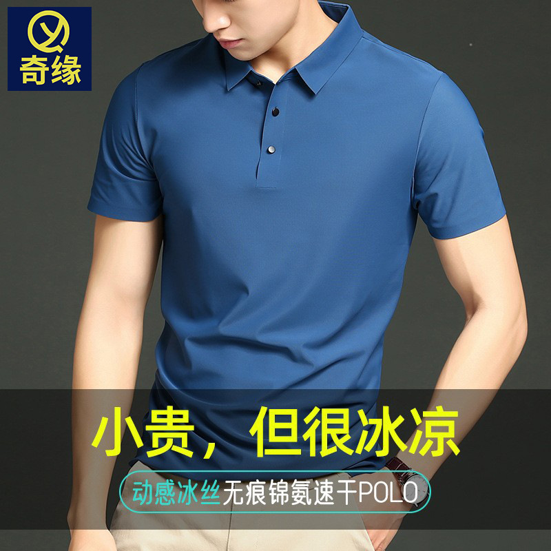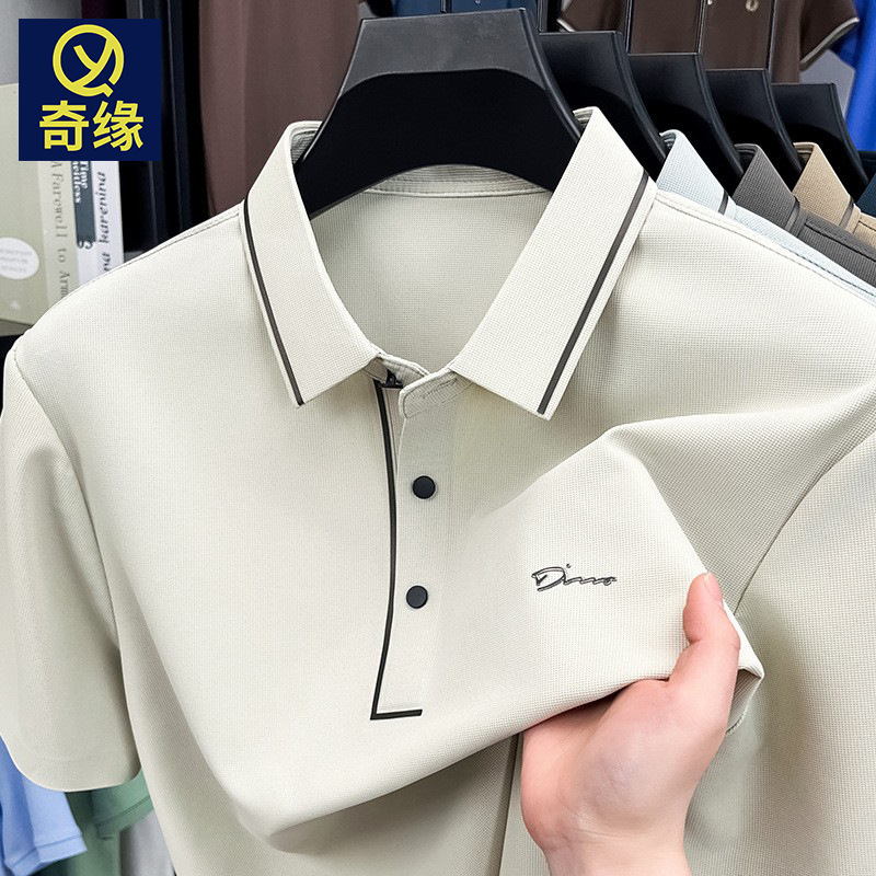 高級感アイス半袖ポロシャツ男2025夏新作ファッションカジュアルトレンドシンプル折り襟tシャツ男