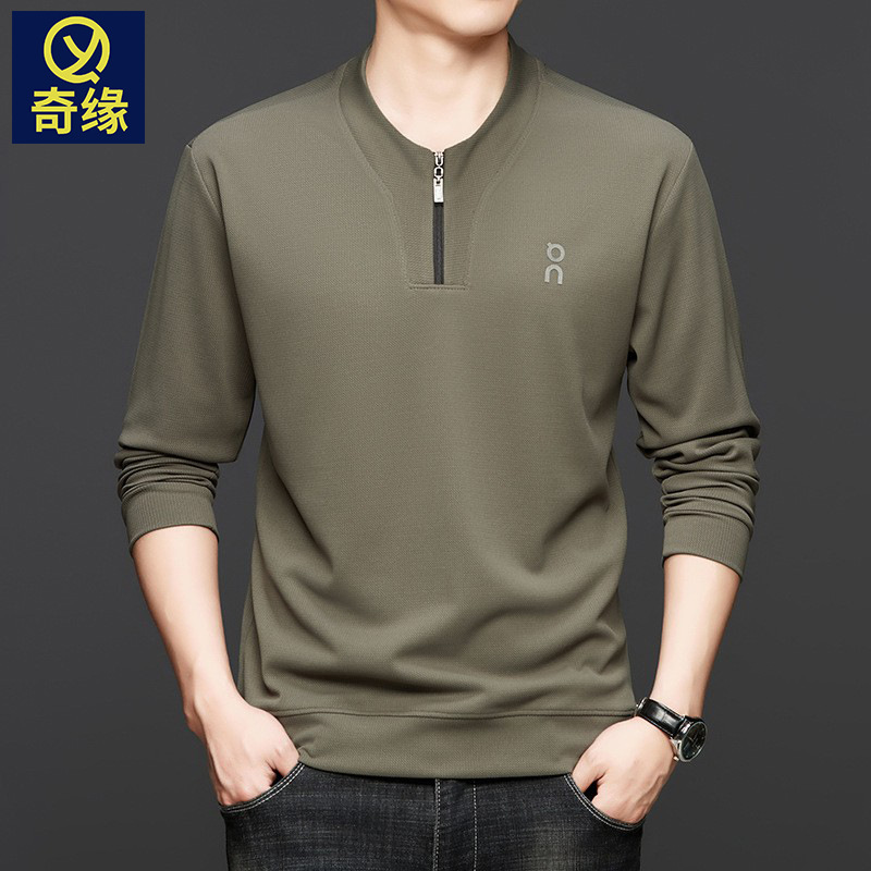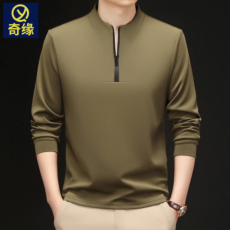 軽くて豪華な半ファスナーの衛の男の2025春の新型のカジュアルな男性の底のシャツの純色の百合の長袖のtシャツの男
