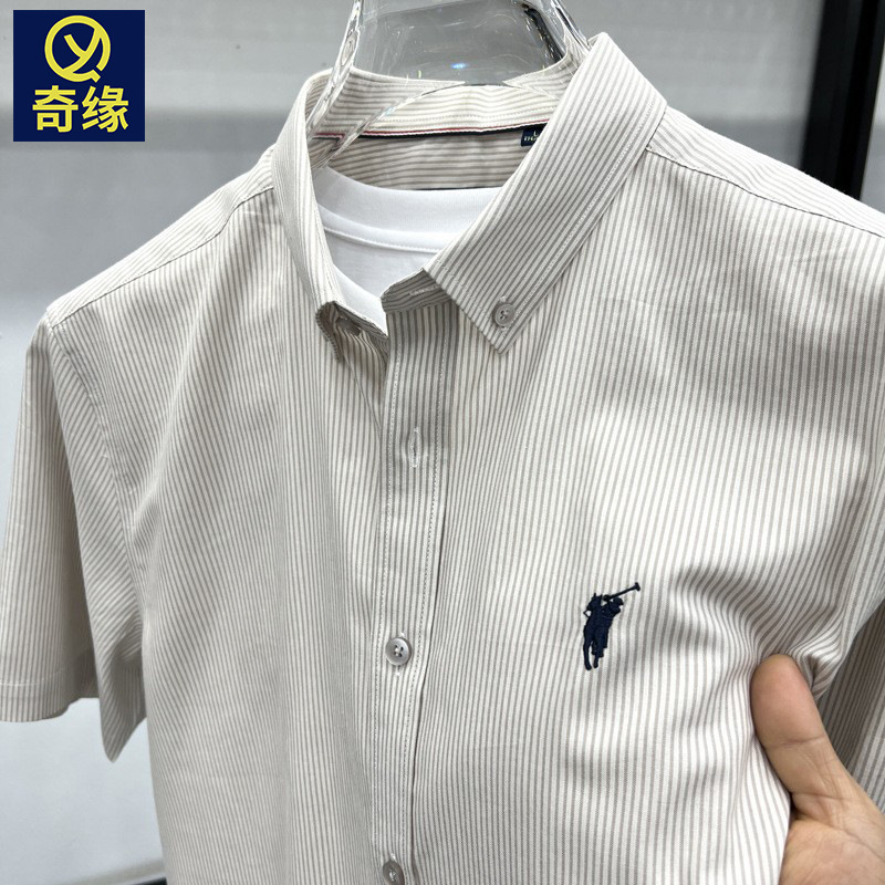 高級感半袖ストライプシャツ男性純綿2025夏新作韓国版カジュアルファッションファッション男性シャツ
