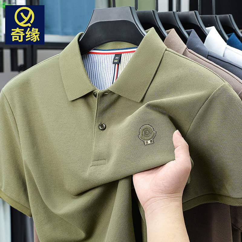 2025夏シルク綿半袖男性poloシャツビジネスカジュアル純色刺繍折り襟男性tシャツ卸売り
