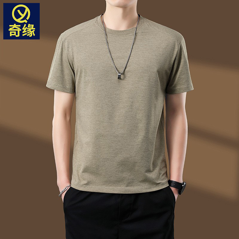 氷糸綿丸襟半袖tシャツ男2025夏の新型ファッショントレンド純色シンプルな男性tシャツ