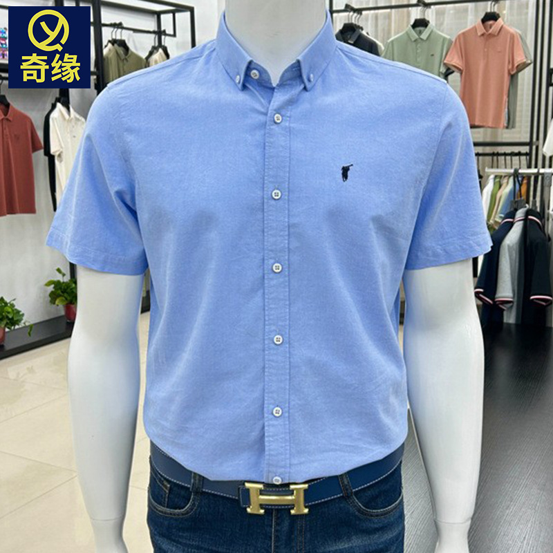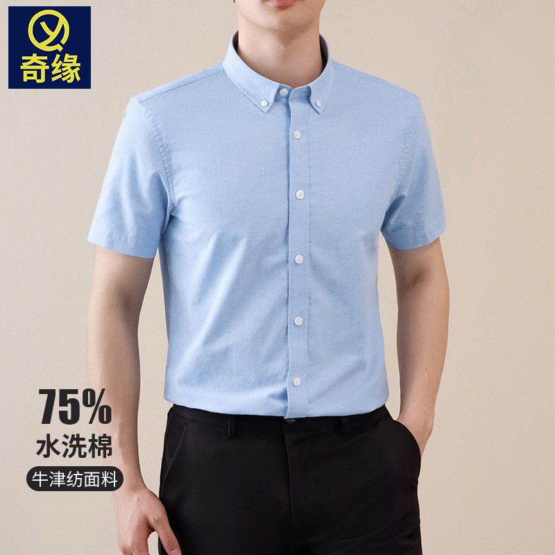 オックスフォード紡織水洗綿半袖シャツ男性用中年ビジネスカジュアルファッションシンプルな純色の男性シャツ