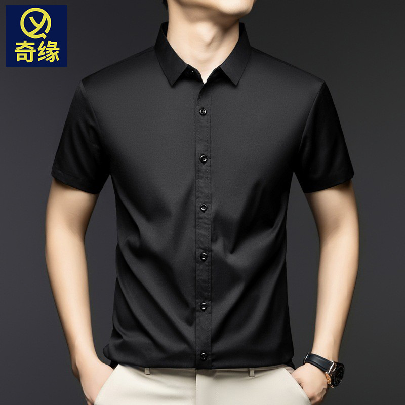 黒ビジネス半袖シャツ男性高級感2025夏の新しい中年カジュアル薄い純色男性シャツ