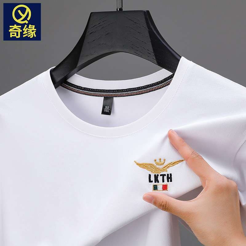 2025夏の新型シルク綿刺繍半袖男性tシャツファッショントレンド純色ファッションブランド男性tシャツ卸売り