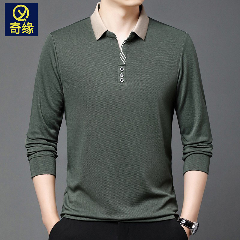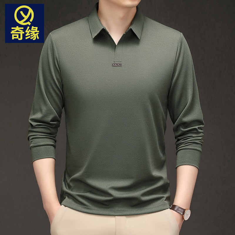 クロスボーダーハサミ襟長袖poloシャツ男2025春新作中年ビジネスカジュアルインナー折り襟tシャツ男