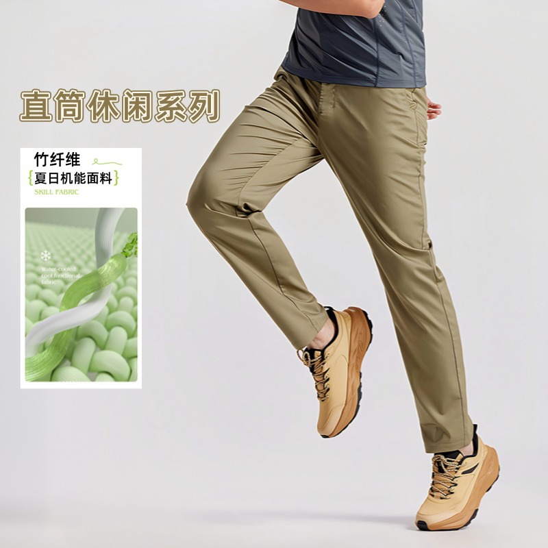 竹繊維抗シワ男性カジュアルパンツ2025春新作スポーツアウトドアカジュアル直筒高腰長ズボン男