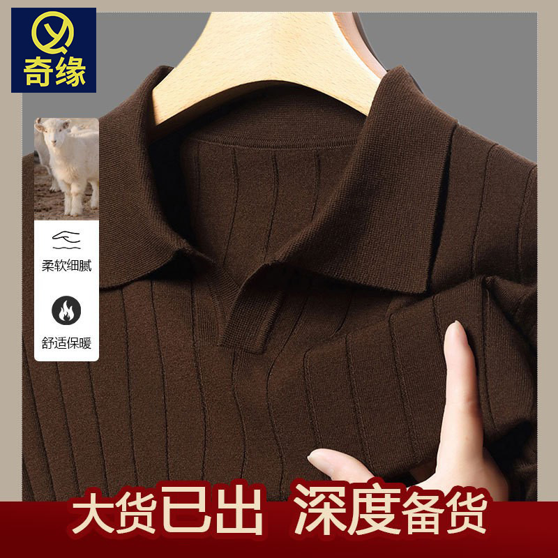クロスボーダー6ウールニットポロシャツ男性長袖2025春新作ビジネスカジュアルシンプルボトムセーター男性