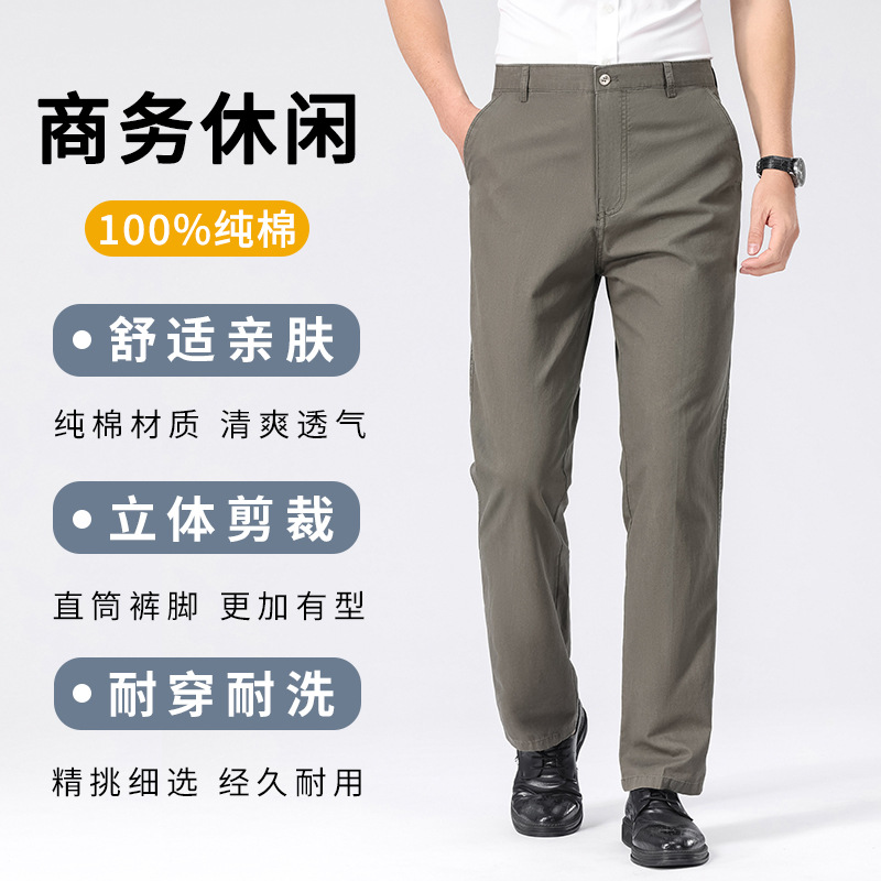 純綿男性カジュアルパンツ2025夏の新型中年お父さん服ビジネスカジュアル純色通気ズボン男性モデル
