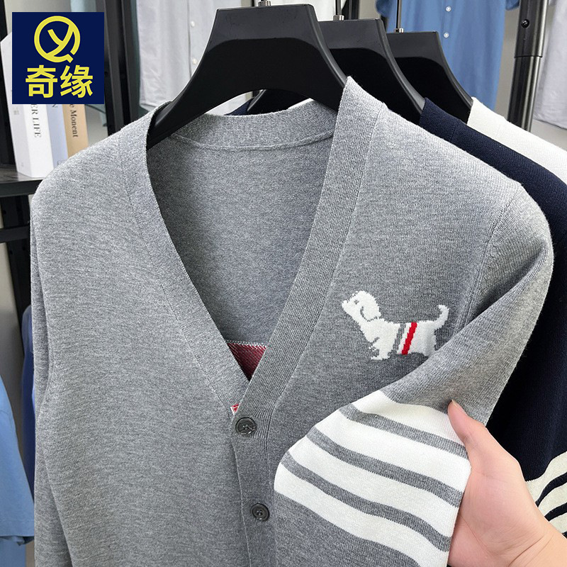 高級感ジャカードニット男性2025春新作青年ファッショントレンド百合セーター男性カーディガン