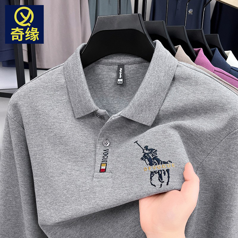 シルク綿長袖poloシャツ男2025春新作刺繍綿綿通気ファッション百合長袖tシャツ男