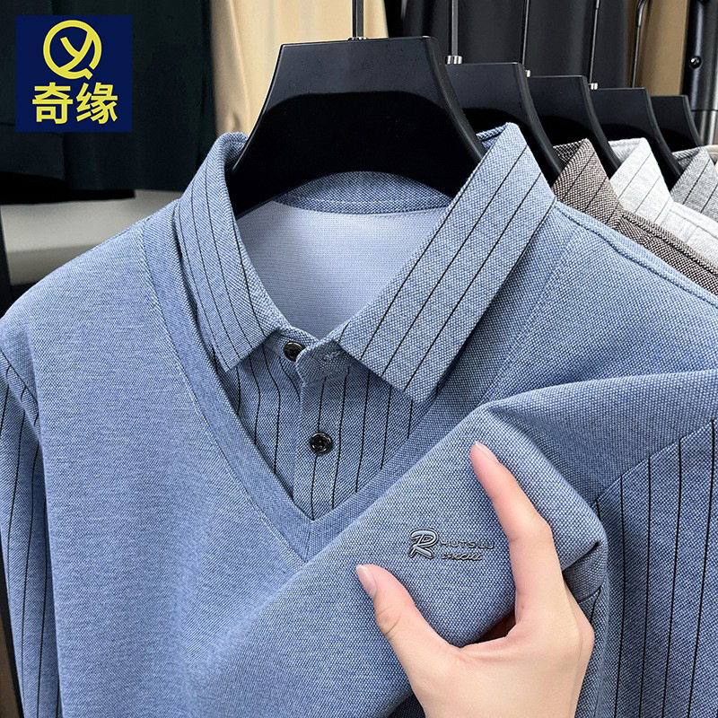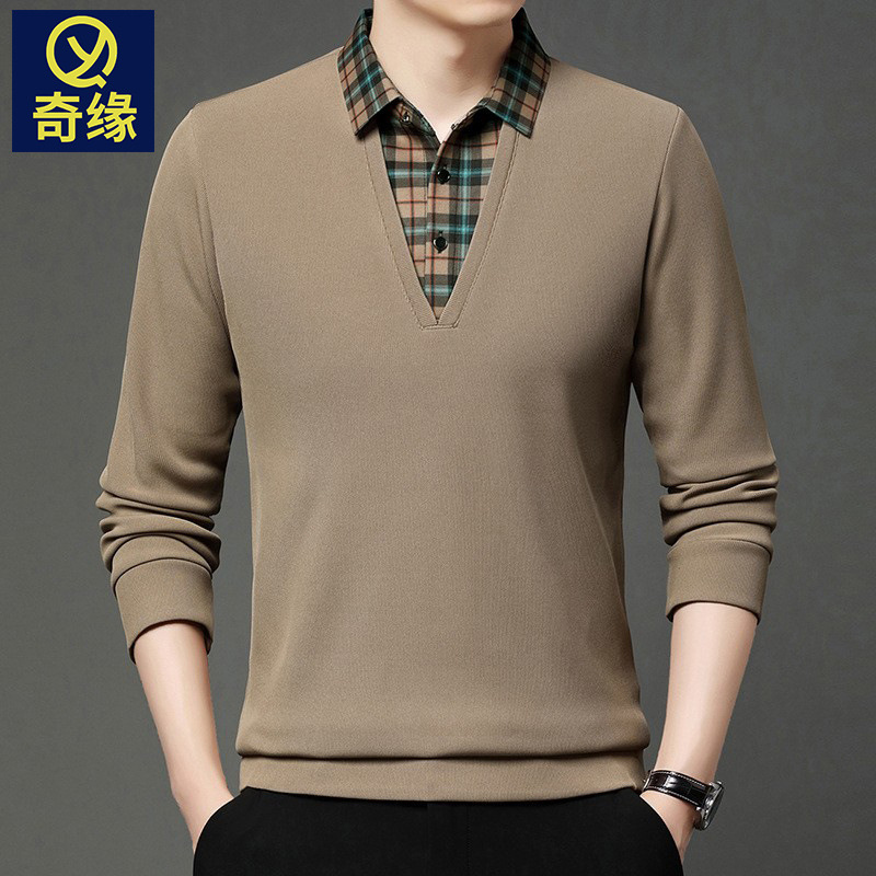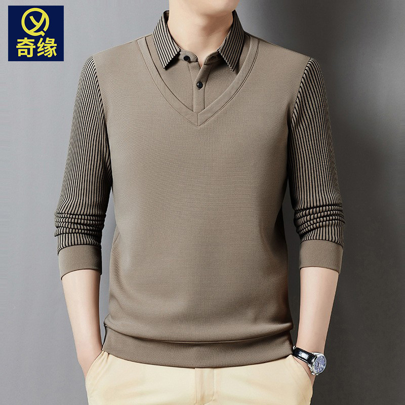 高級感長袖tシャツ男性用偽二枚中年お父さん服ビジネスカジュアル刺繍