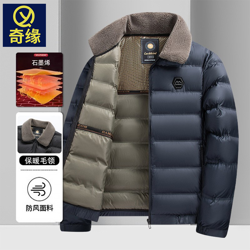 冬の新型厚手男性綿服高級感毛襟は中年ファッションカジュアル男性綿入れコートを取り外し可能