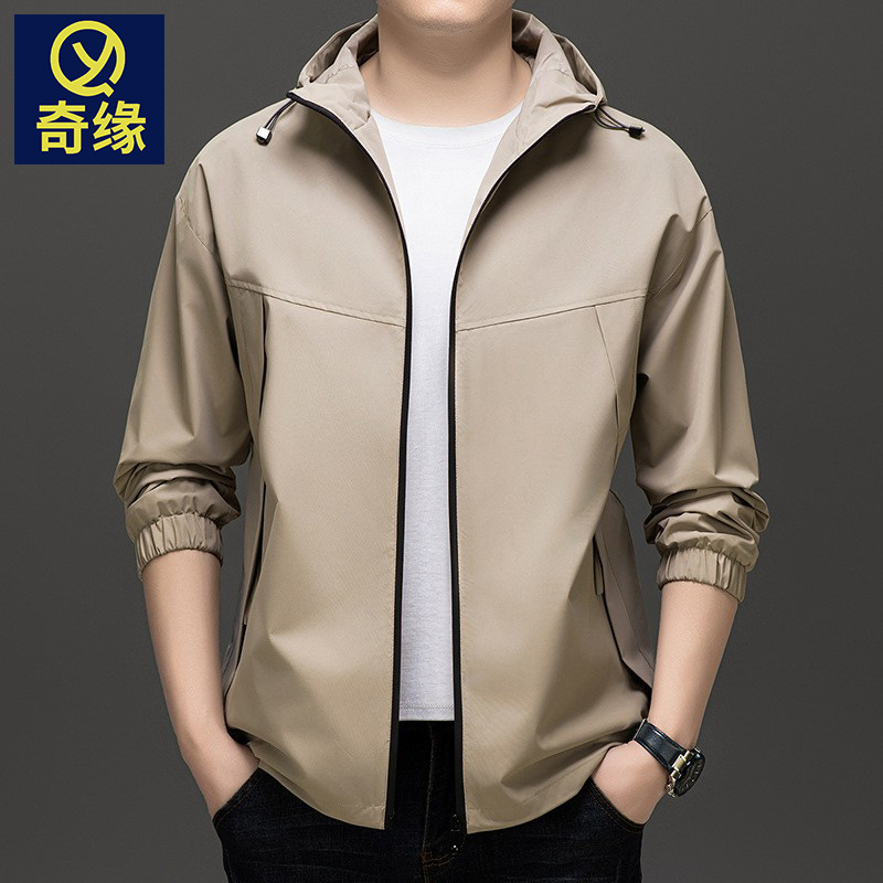 2025春の新型アウトドア突撃服男性韓国版カジュアルファッションファッションファッション純色フード付き男性ジャケット