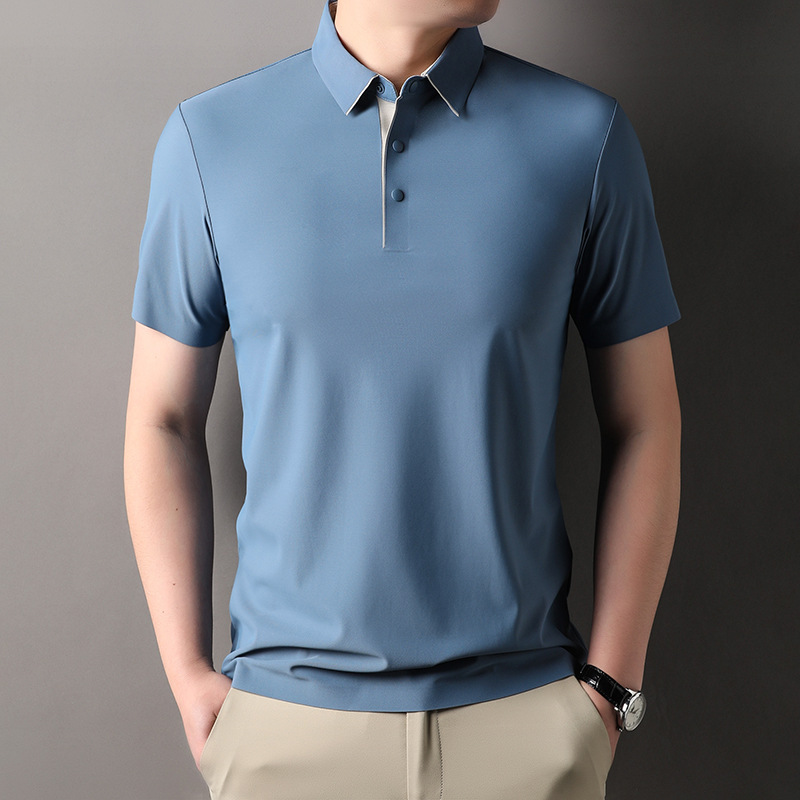 錦アンモニア無痕氷糸半袖男性poloシャツ2025夏新作ビジネスカジュアルゆるい襟付きtシャツ男