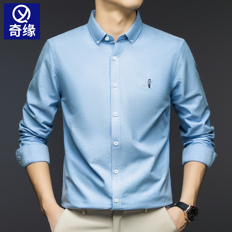 高品質の純綿男性シャツ2025春秋新型長袖ビジネスカジュアル刺繍シャツ男性卸売り