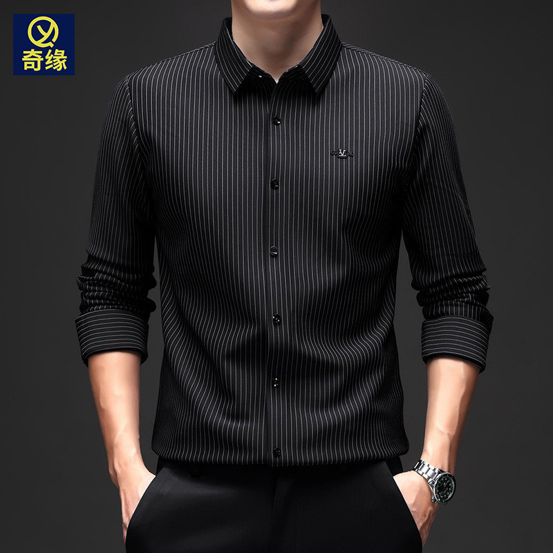 2025春と秋の新型高弾無痕男性シャツビジネスカジュアルストライプ