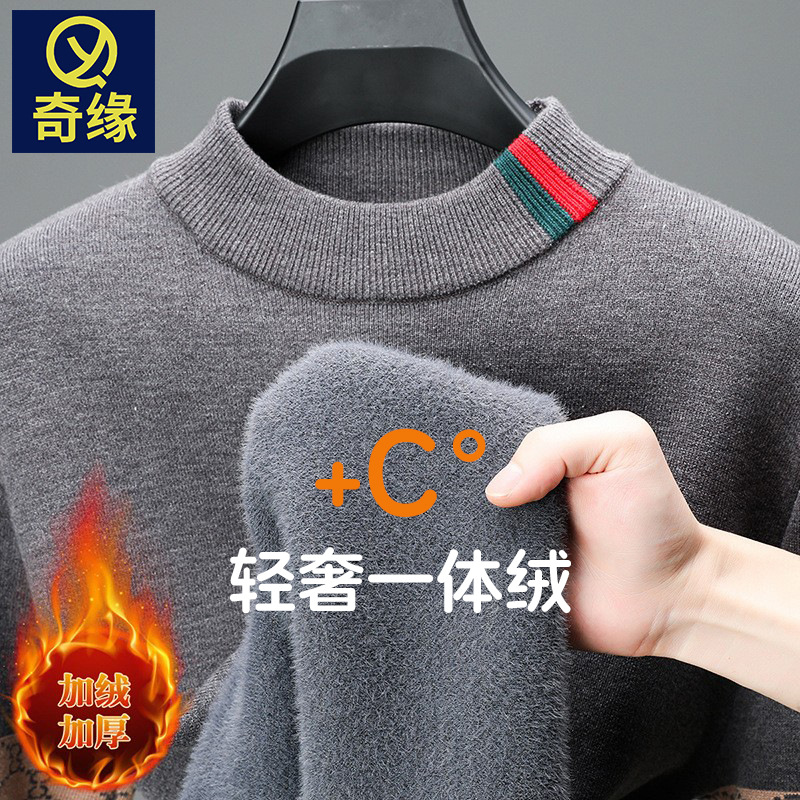 580グラム一体パイル男性セーターベルベット保温半高襟ジャカードセーター男性卸売り