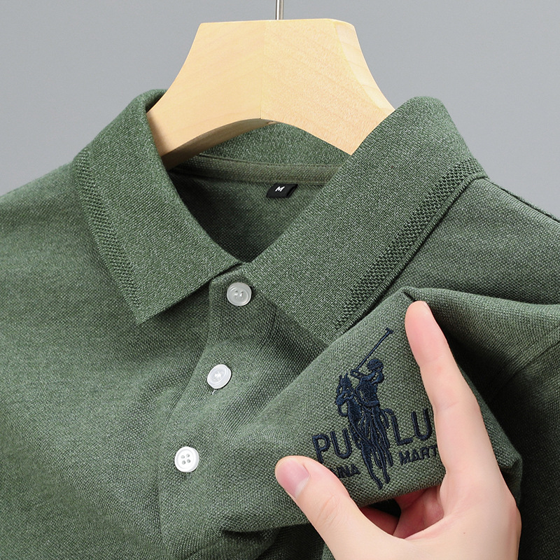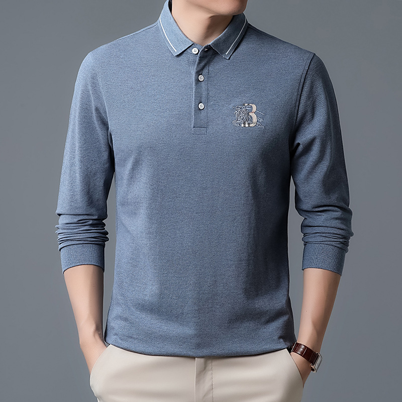 2025春秋新作純綿長袖ポロシャツ男性中年ビジネスカジュアル刺繍折り襟メンズtシャツ