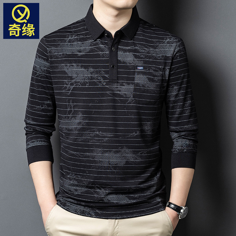 2025春秋新型長袖男性poloシャツ中年ファッションカジュアルファッションプリント襟poloシャツ男性モデル
