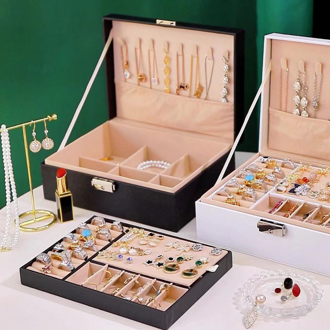 新型二重引き出し革製アクセサリーケース高級ジュエリーケース大容量ロック付き収納展示ケース棚