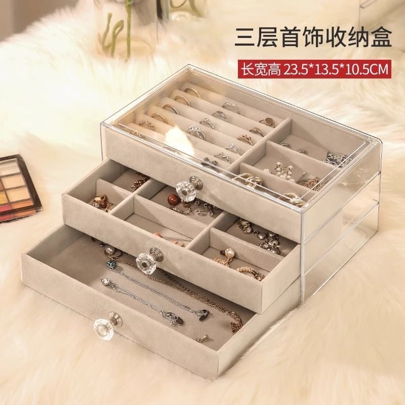 大容量ベルベットアクセサリーケース高颜値新指輪ネックレスピアス収納ケース高級感防塵