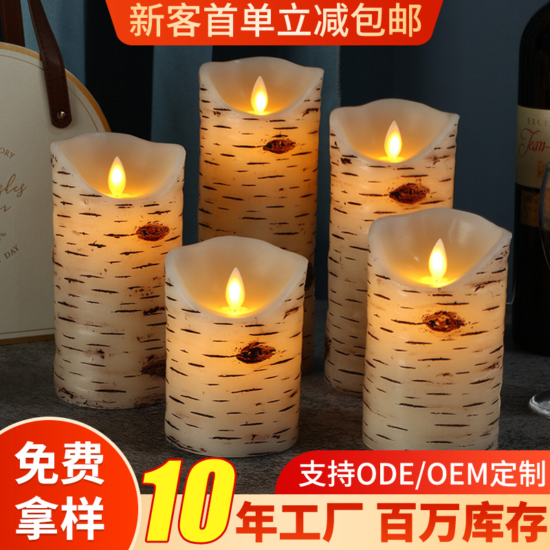 Ledシミュレーションキャンドルスイングキャンドルロマンチックなシーン樺樹皮キャンドルワックス偽キャンドルバーウェディングレストラン