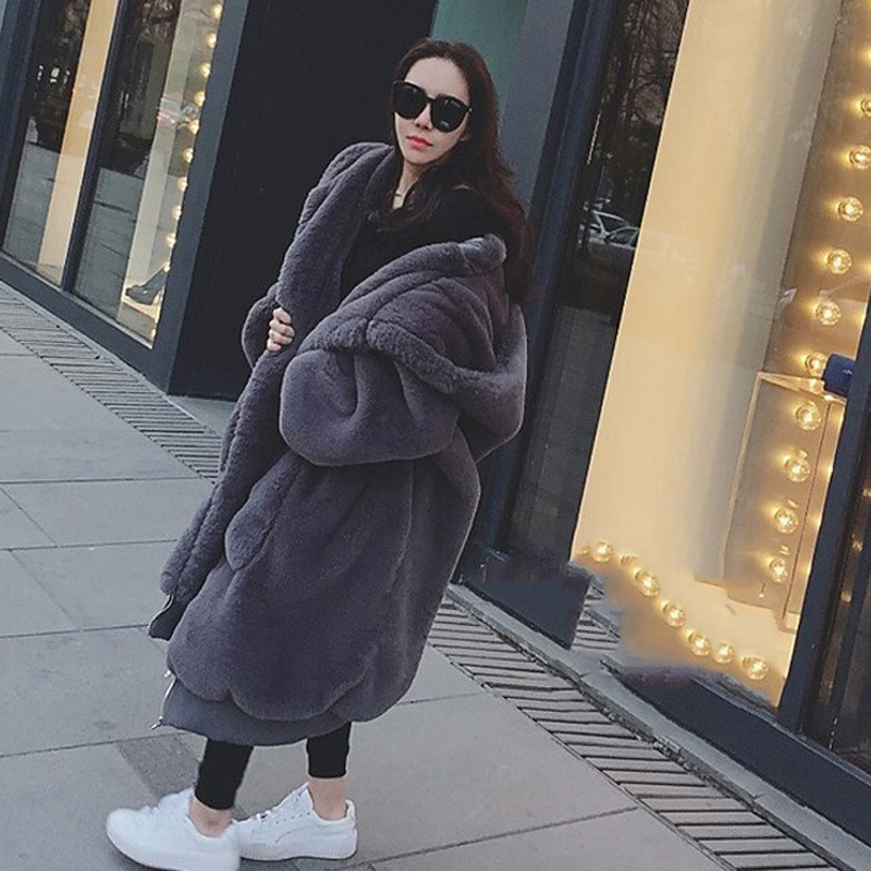 秋冬はウサギの毛皮の毛皮のコートの白色の韓国版の両面の丸首の長袖の婦人服の毛のふわふわしているコートの毛羽のコートをまねます。