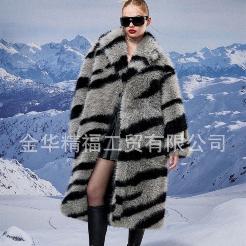 毛皮のコートのような女性のトカシマウマの紋様の欧米の新型の長いタイプの冬のレジャーの保温はミンクの毛のコートをまねます。