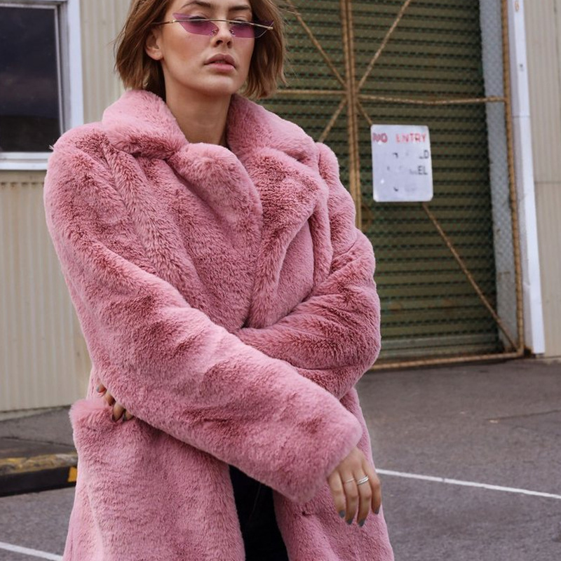 2021人工毛皮のキツネの毛のコート欧米の長袖のピンクの襟の街頭の潮人は毛皮のコートの婦人服をまねます。
